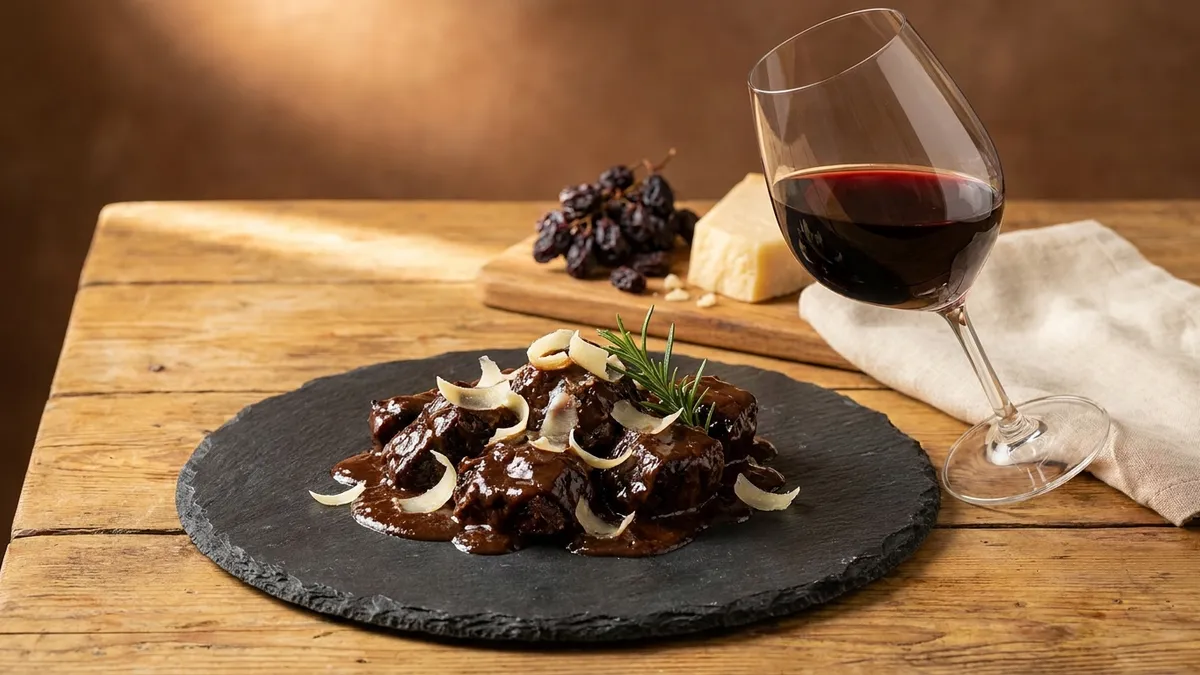 Amarone pairs with rich braised meats like osso buco, beef brasato, and game stews. Aged hard cheeses such as Parmigiano-Reggiano and aged pecorino also work well. The wine's high alcohol and dried-fruit intensity demand bold, slow-cooked dishes. Lighter Valpolicella Classico is the better choice for pasta, pizza, or charcuterie.