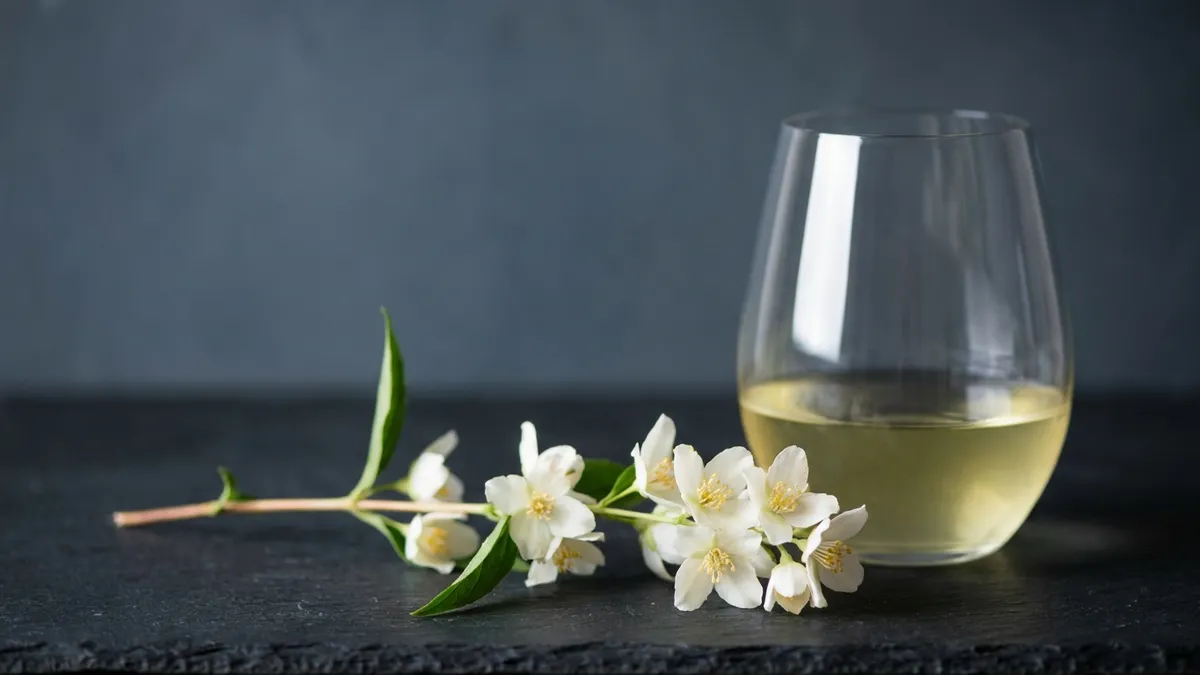 Jasmine is rich, slightly heady, and unmistakably tropical-leaning. It shows in Viognier, full-bodied Riesling, and some Albariño. Jasmine is a more luxurious cousin of orange blossom — same family, more weight.