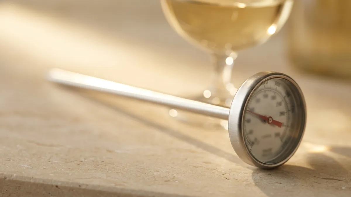 A cheap probe thermometer — the same one you use for steak — closes the gap between guessing and knowing. Dip the probe in the glass for ten seconds before the first sip and the number tells you whether to wait or pour.