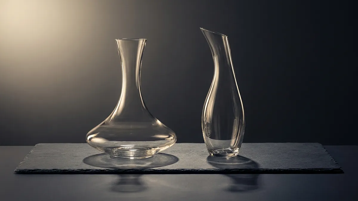 Yes, more than most beginners realize. A wide-bottomed decanter exposes a large surface area to oxygen and aerates fast — ideal for tight young reds. A narrow-necked decanter (sometimes called a Port duck) limits oxygen and is better for fragile aged wines that just need sediment removed. For everyday drinking a plain glass carafe is fine. The shape is a refinement, not a requirement.