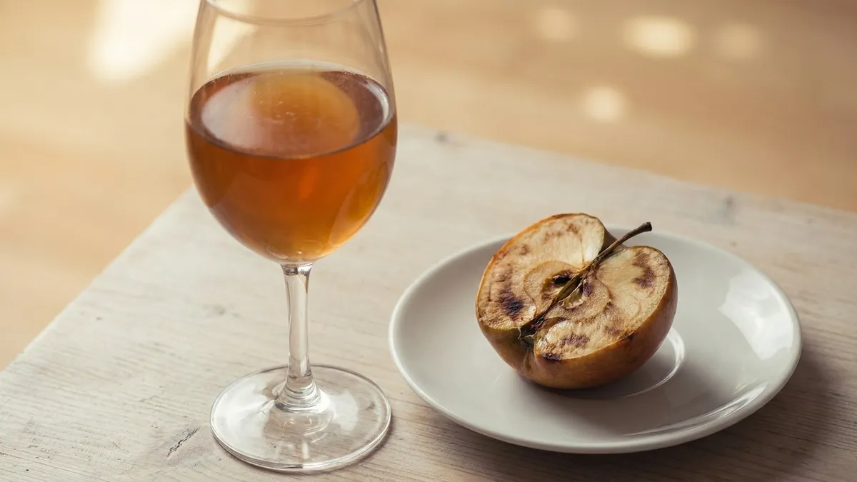 Color is a second clue. White wines turn deep gold, amber, or even brown. Reds shift from ruby toward brick or rust. The palate goes flat — acidity dulls, fruit collapses, and a sherry-like thinness takes over. Note that intentional oxidative styles like dry Sherry, Madeira, or orange wine are not faulty. The same nutty, bruised-apple character is a feature there. The fault is when those notes show up in a wine that was never meant to taste that way.