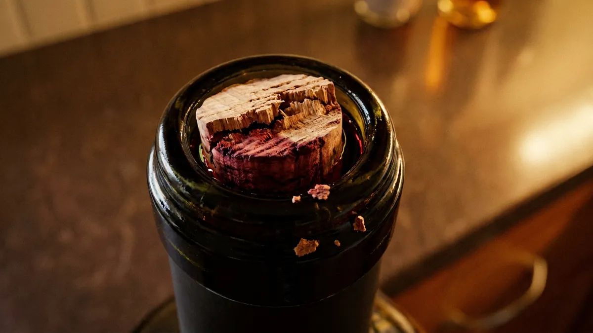 Crumbly corks usually come from an angled worm — the corkscrew was not driven straight down — or from a wine stored badly so the cork dried out. Always center the worm on the cork, drive it straight, and stop one spiral before the worm punches through the bottom of the cork. Stored upright for years, even a young cork can dry and crumble.