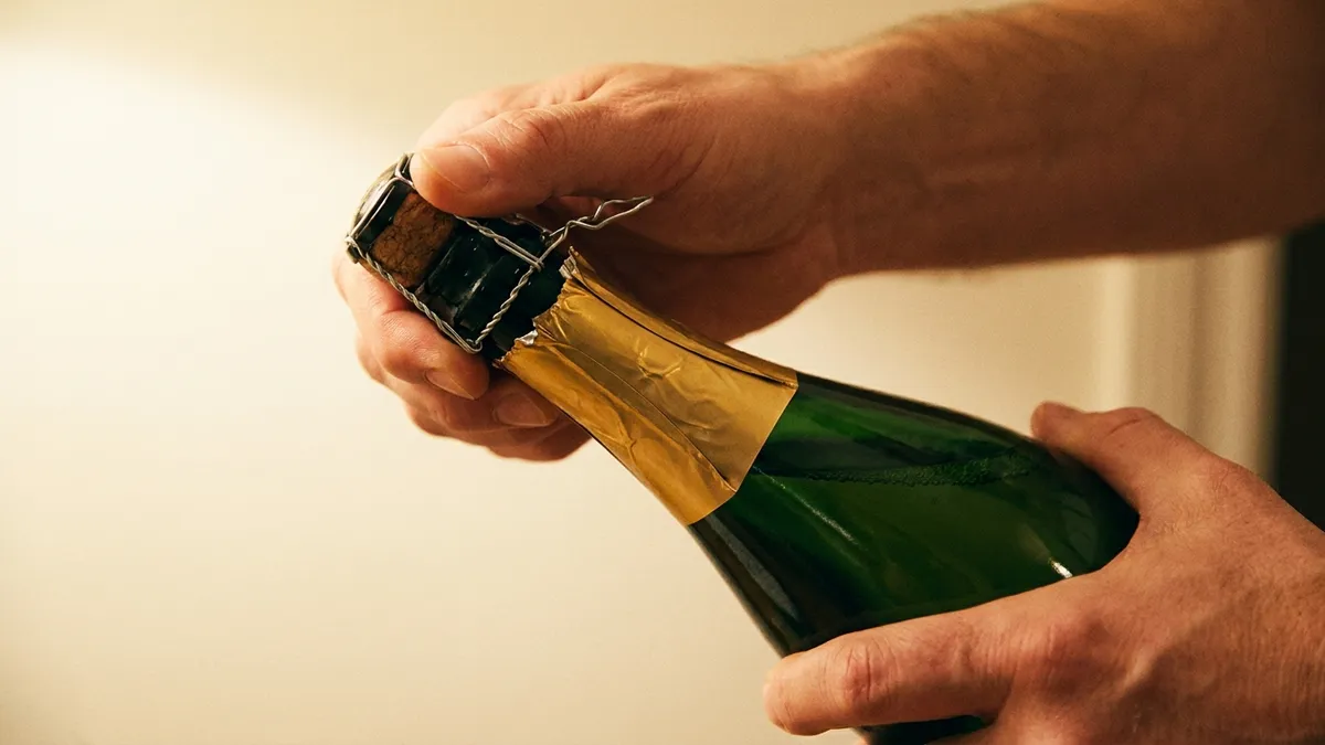 Champagne, Prosecco, Cava, and other sparkling wines should never be opened with a corkscrew. The cork is held in by pressure — about 5–6 atmospheres, roughly the pressure of a city bus tire. A flying cork can cross a room in under half a second and cause serious eye injuries. The technique below is the slow, controlled, sommelier version.