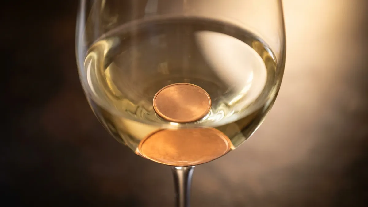 - Pour the wine off into a clean glass, leaving the coin and any sediment behind.