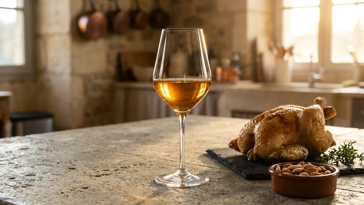 - Roast chicken with thyme, rosemary, or tarragon — the herbal lift complements the wine's honeysuckle