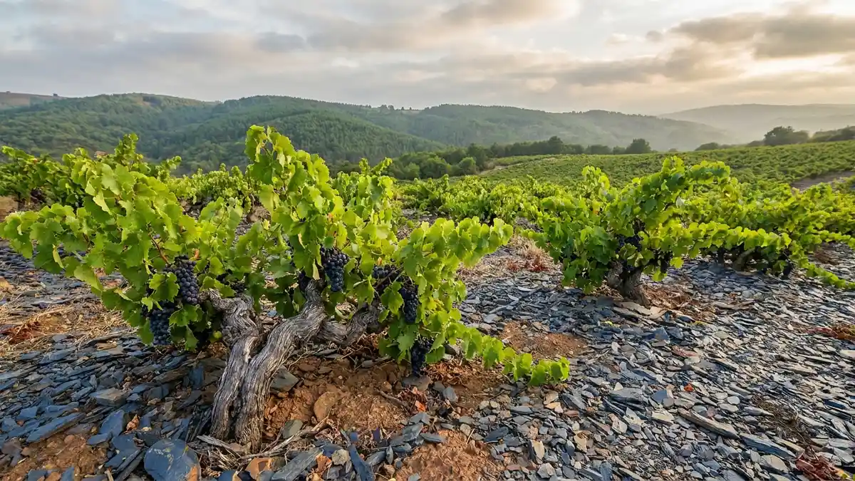 Bierzo is the most internationally famous home of mencía. Tucked into a basin between the mountains of León and Galicia, the region sits at the meeting point of Atlantic and continental climates. Soils are predominantly slate (pizarra) and clay, with the best vineyards planted on steep south-facing slopes at altitudes of 450 to 800 meters.