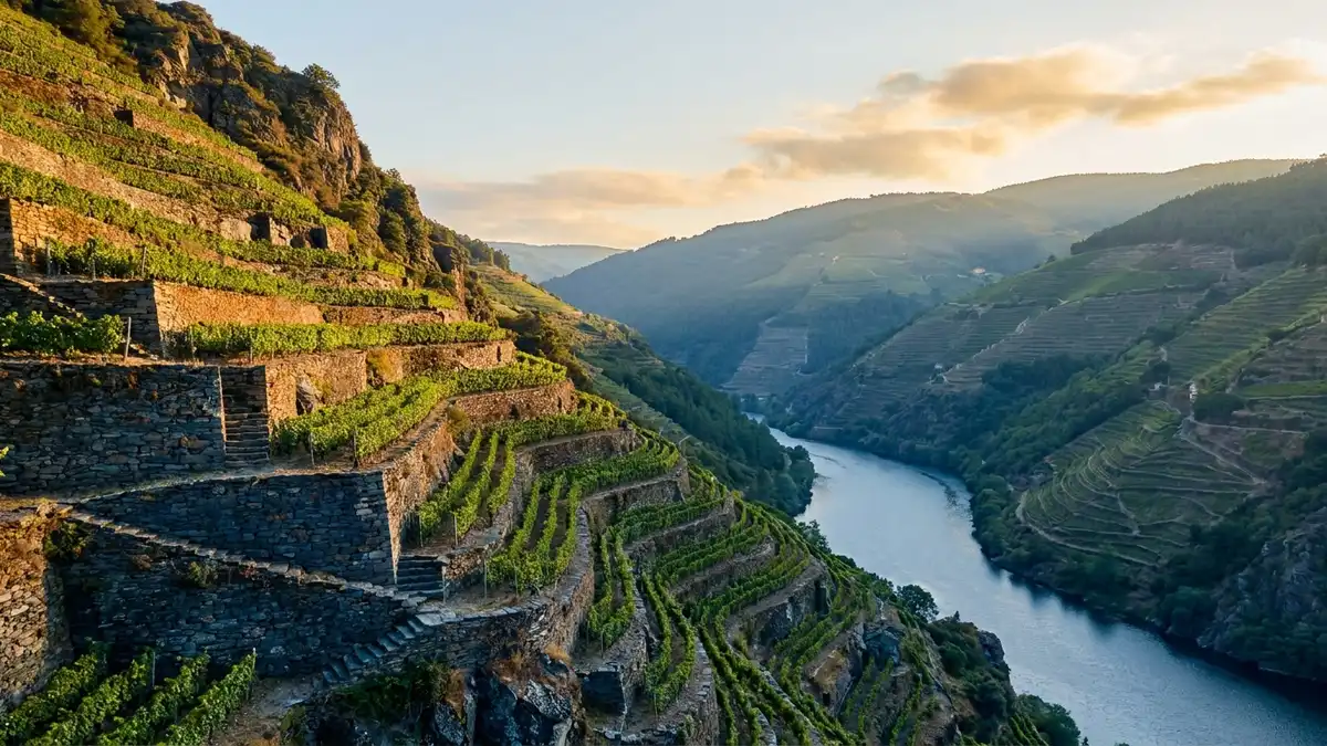 If Bierzo is mencía's prestigious face, Ribeira Sacra is its dramatic one. The vineyards are terraced into near-vertical slopes above the Sil and Miño rivers, in canyons so steep that nearly all work is done by hand or with monorail tractors. The Romans planted here two thousand years ago because the slopes caught precious sun in an otherwise cool, wet Galicia.