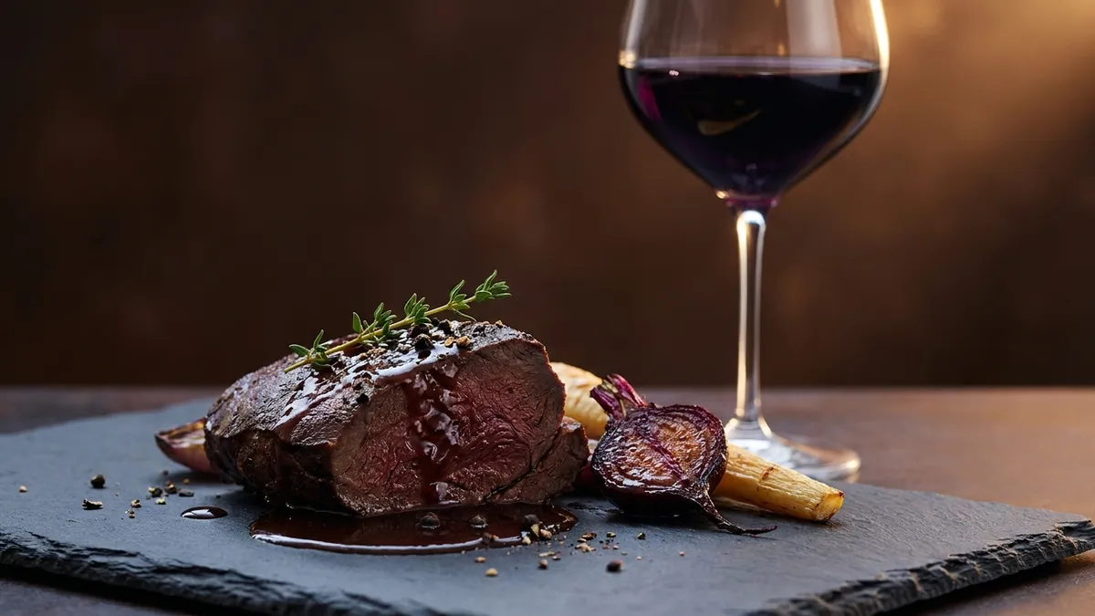 - Grilled steak with peppercorn crust — classic high-tannin red pairing