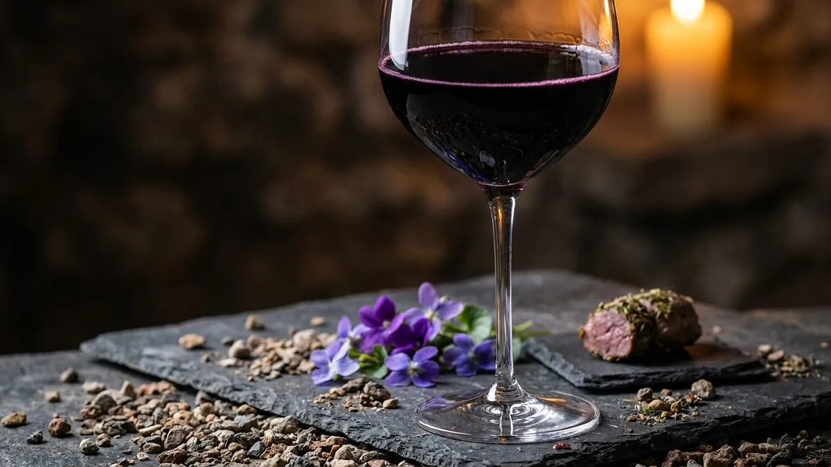 - Sniff first for violet, then dig for the savory layer — the floral lift sits on top of black olive, leather, and herb.