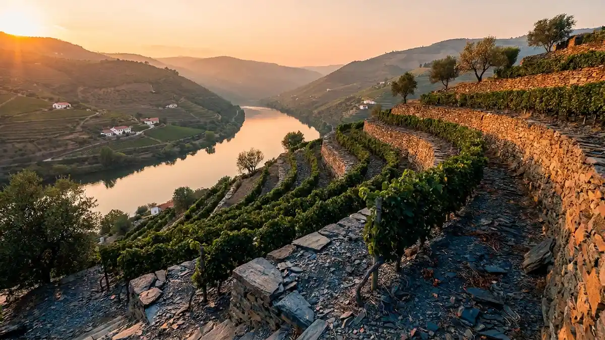 The Douro Valley is Touriga Nacional's spiritual home and the source of nearly every great example. The valley is split into three sub-regions running east from the city of Porto: Baixo Corgo (cooler, wetter, Atlantic-influenced), Cima Corgo (the heart of premium Port and Douro DOC), and Douro Superior (hotter, more continental, increasingly important).