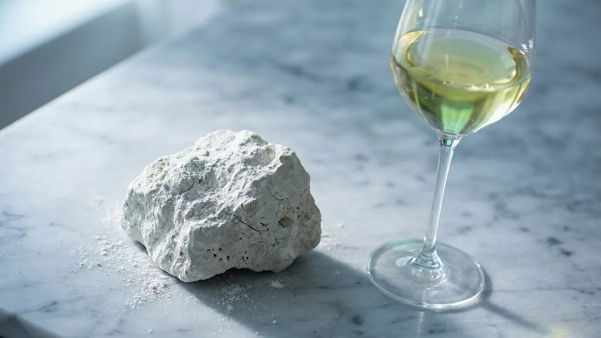 Limestone soils — chalk, marl, Kimmeridgian — drain well, hold cool moisture, and produce wines with bright acid and a distinctive chalky finish. The classic regions are Chablis in northern Burgundy, the Côte des Blancs in Champagne, and parts of the Loire.