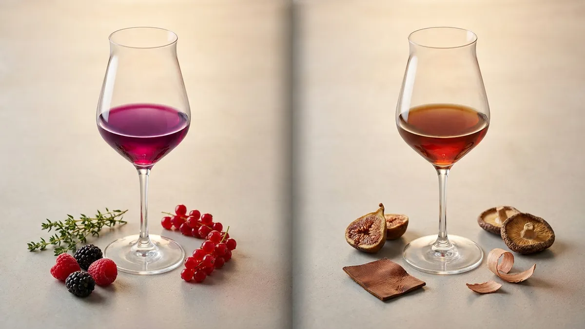That contrast is the entire framework in one tasting. Try the same exercise with two Rieslings, two Cabernet Sauvignons, or two Chardonnays — the mechanism is the same in every grape, just with different signature tertiary notes.