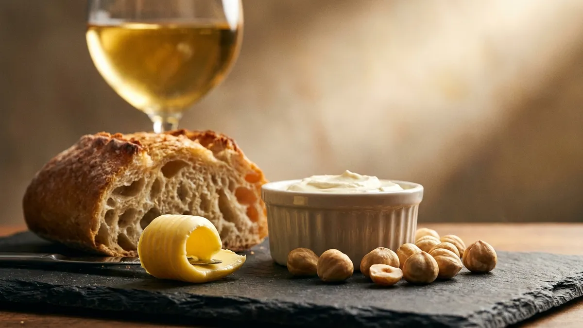 - Lees aging — bread, brioche, biscuit, toasted nut, fresh dough (especially in traditional-method sparkling and white Burgundy)
