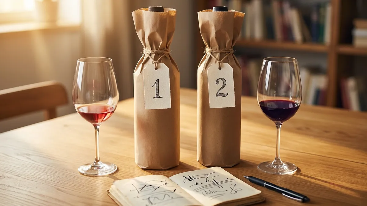 Wrap each bottle in a paper bag or aluminum foil before the date starts. Mark them A and B. Pour 2-ounce pours into the matched glasses. The blind format keeps both partners honest, removes price and label bias, and turns the reveal into the funniest part of the evening.
