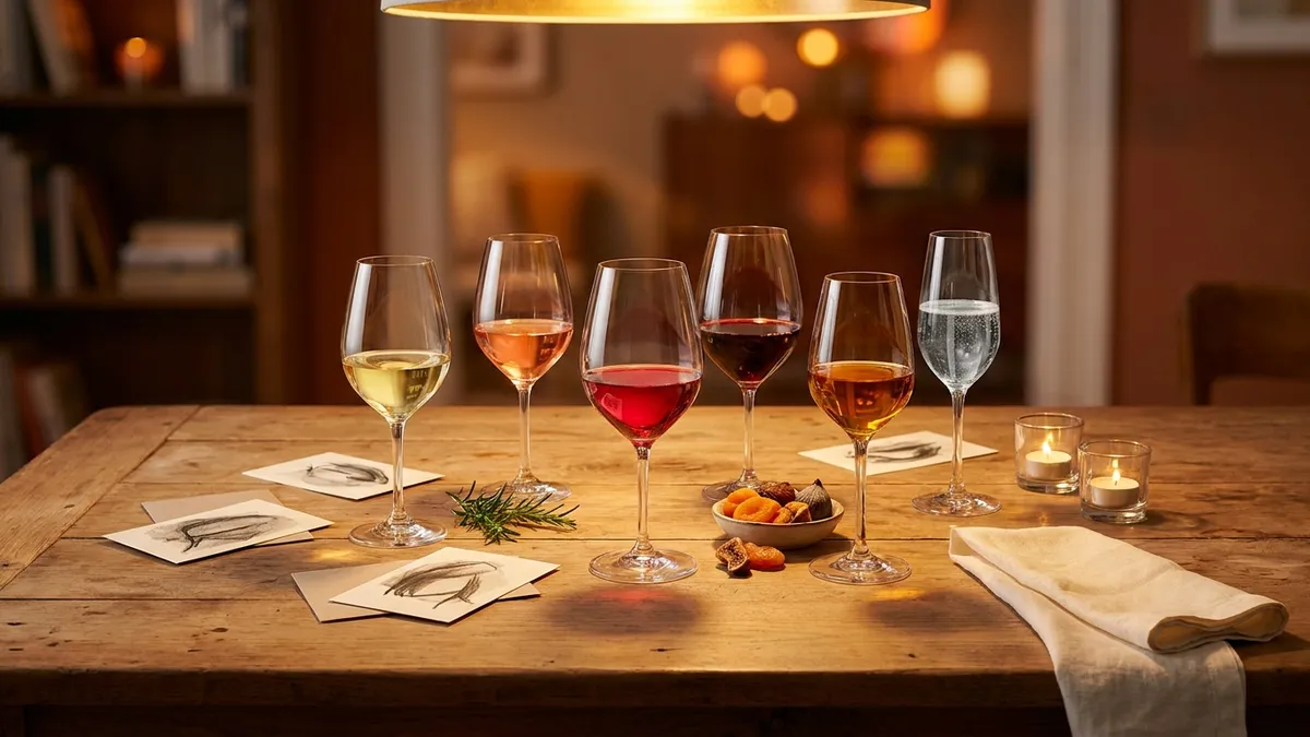 For setup mechanics — pour sizes, temperatures, glassware, food — see our companion wine tasting party guide. This article is the menu of themes; that one is the host's playbook.