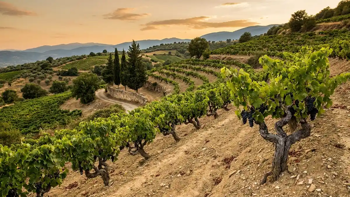 Naoussa PDO is the most famous and most rigorous expression. The zone covers the eastern foothills of Mount Vermio in central Macedonia, between roughly 150 and 400 meters of altitude. Naoussa is the only Greek PDO that requires 100 percent Xinomavro, and the rules around aging are some of the strictest in the country.